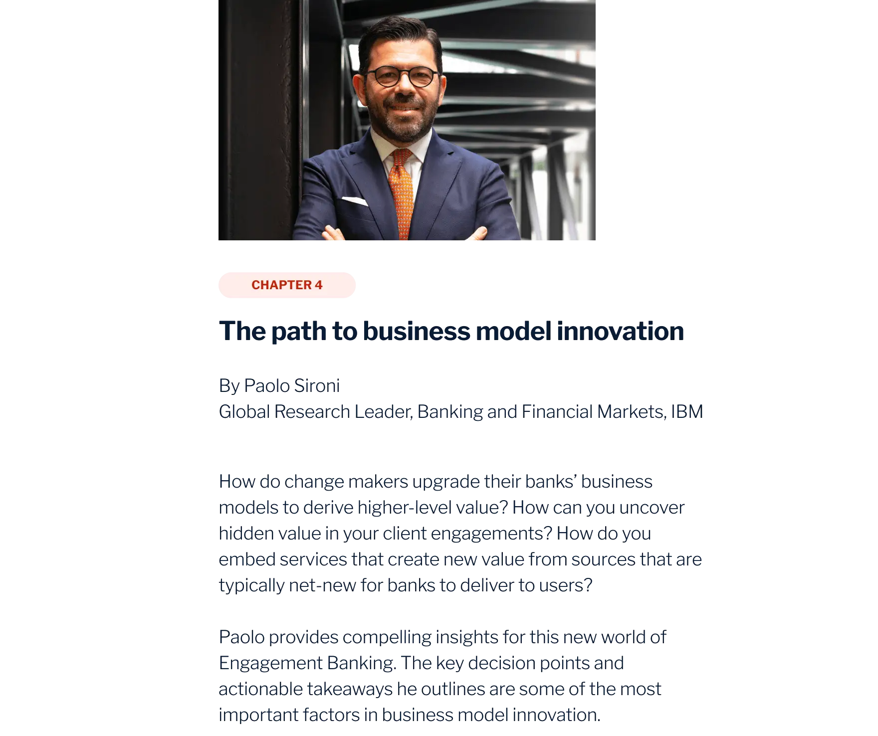 The path to business model innovation By Paolo Sironi Author; Global Research Leader, Banking and Financial Markets, IBM