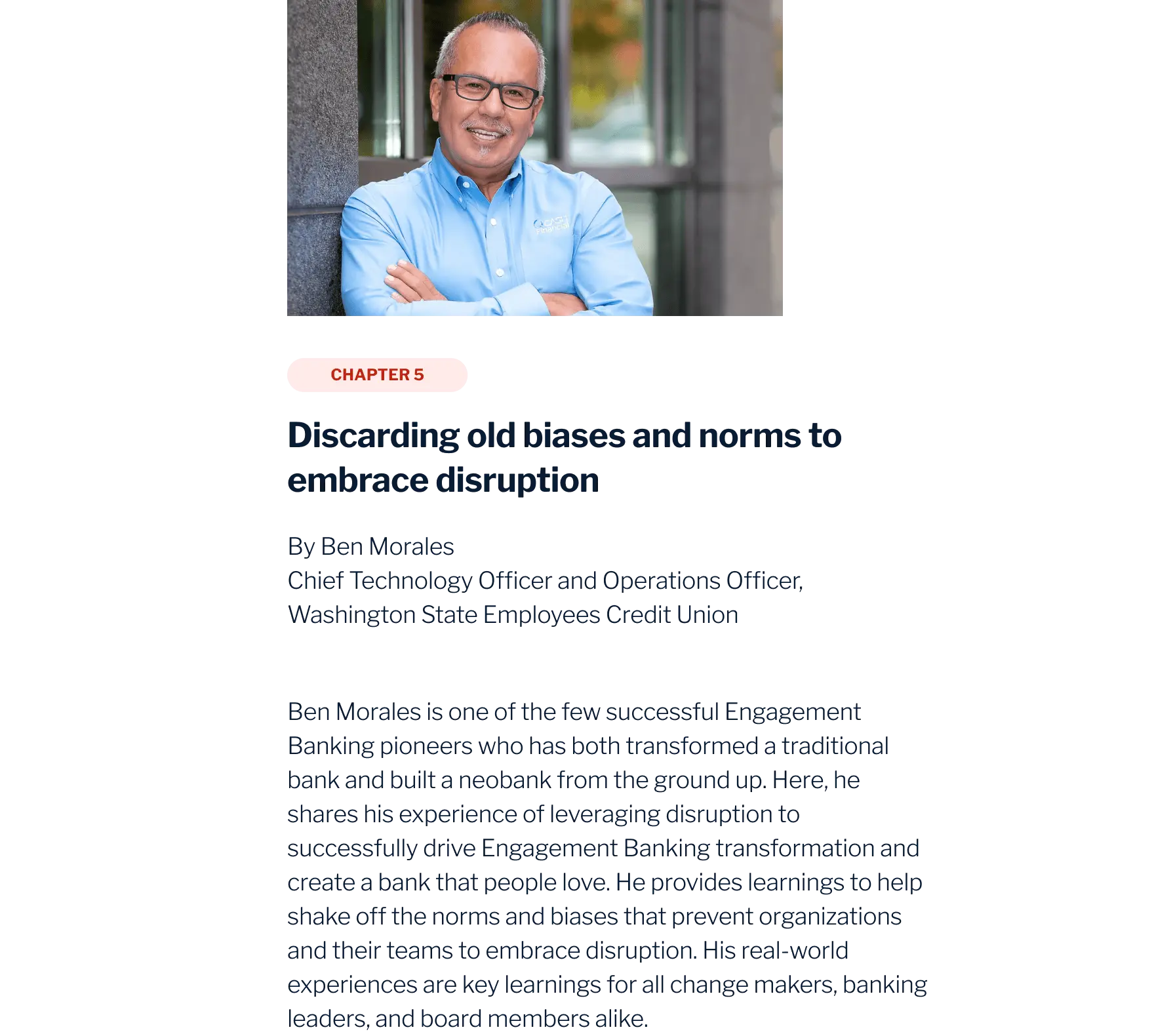 Discarding old biases and norms to embrace disruption By Ben Morales Chief Technology Officer and Operations Officer, Washington State Employees Credit Union