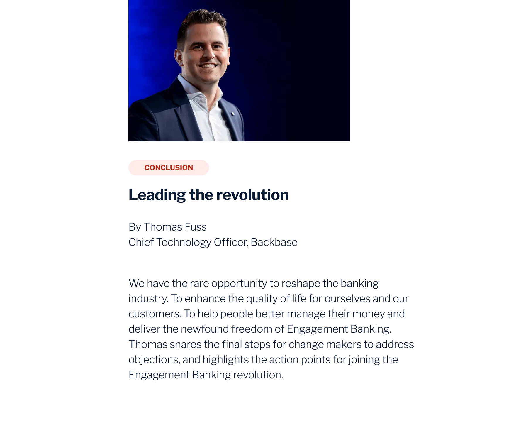 Leading the revolution By Thomas Fuss Chief Technology Officer, Backbase
