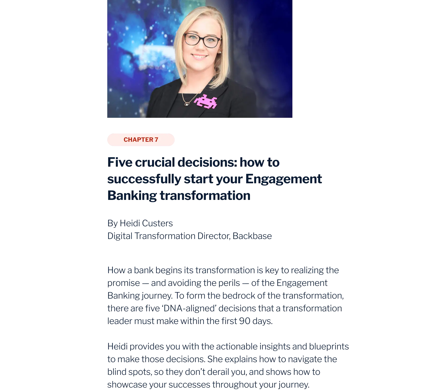Five crucial decisions: how to successfully start your Engagement Banking transformation By Heidi Custers Digital Transformation Director, Backbase
