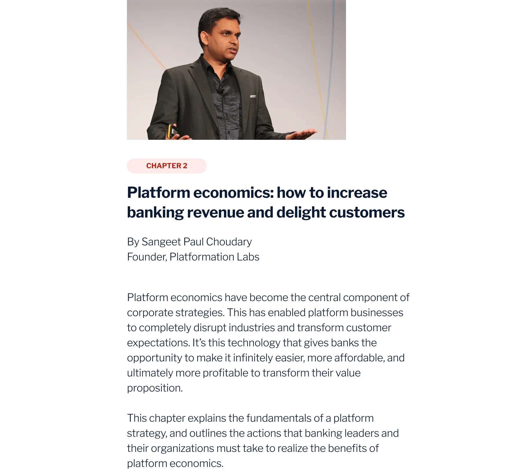 Platform economics: how to increase banking revenue and delight customers By Sangeet Paul Choudary Author; Founder, Platformation Labs