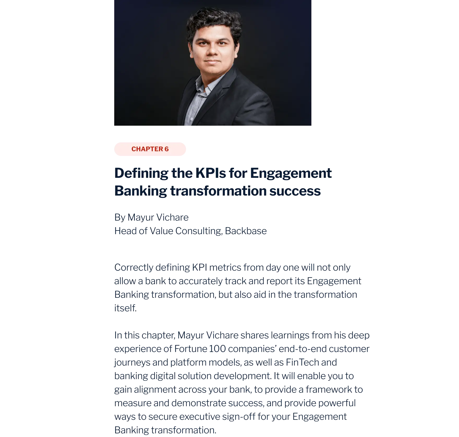 Defining the KPIs for Engagement Banking transformation success By Mayur Vichare Head of Value Consulting, Backbase