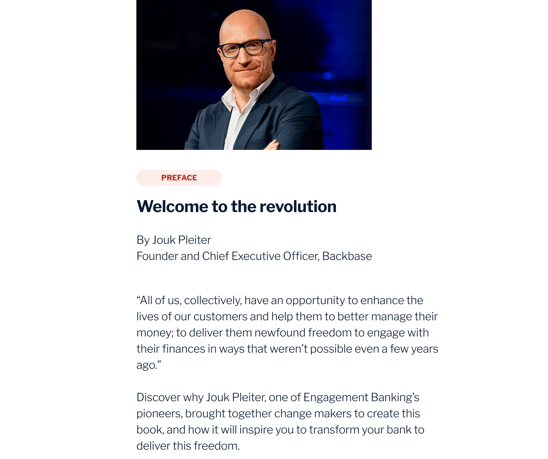 The Engagement Banking revolution By Jouk Pleiter Founder and Chief Executive Officer, Backbase