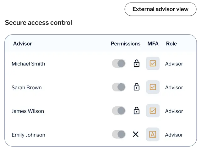 Equip external advisors with the same tools, data, and insights as your internal teams.