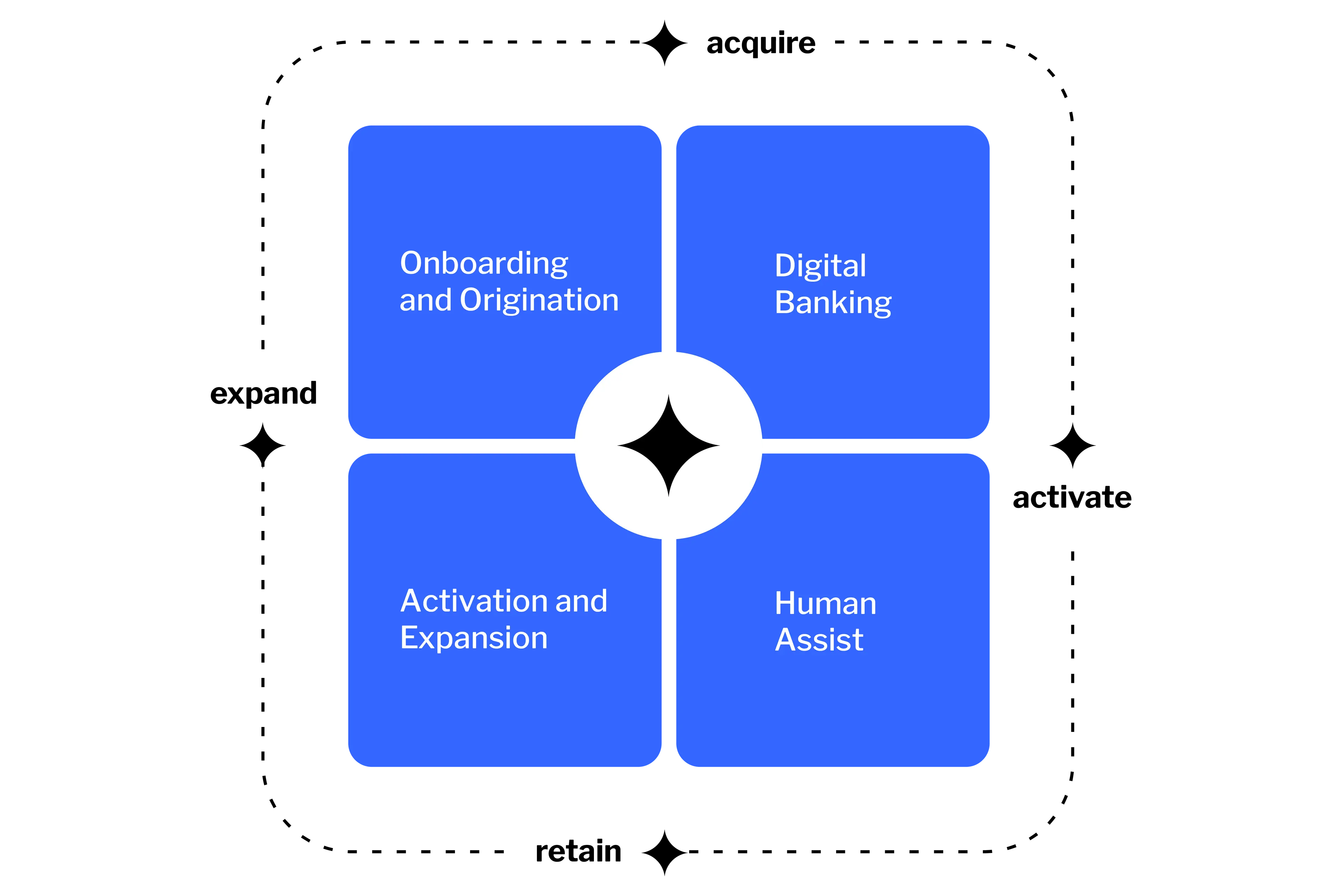 Brinde a los clientes herramientas intuitivas y siempre disponibles para administrar sus finanzas, en cualquier dispositivo y en cualquier momento. Desde las transacciones diarias hasta las inversiones, los clientes pueden acceder a los servicios que necesitan, sin depender únicamente de centros de llamadas o sucursales. Surface la información y los empujones de la IA para guiarlos hacia decisiones más inteligentes, lo que genera compromiso y confianza y profundiza el uso de los productos.