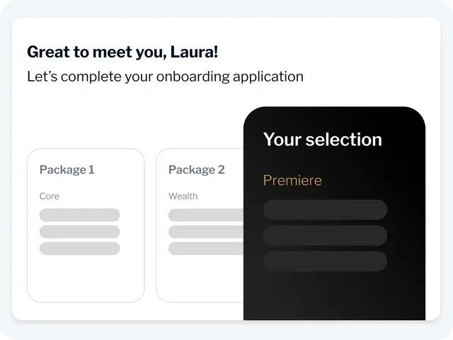 Accogli i clienti HNW e UHNW e le entità complesse con percorsi premium incentrati sul digitale che combinano la praticità con il supporto personalizzato dei relationship manager.