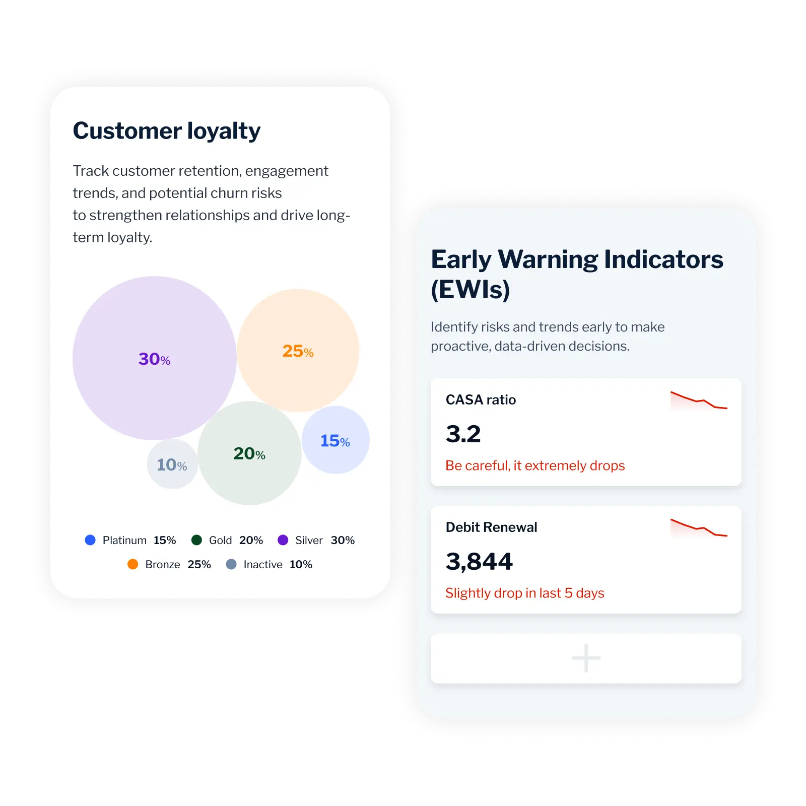 Grazie a informazioni approfondite sul comportamento finanziario dei tuoi clienti, identifica in modo proattivo le lacune dei prodotti e attiva percorsi intelligenti di cross-selling e upsell, assicurandoti che i tuoi consigli siano sempre pertinenti, tempestivi e forniti attraverso il canale giusto.