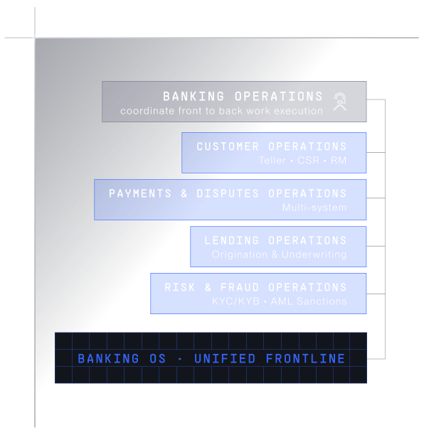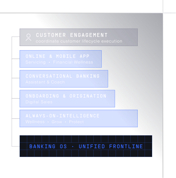 Digital banking, conversational banking, and front-office workspaces work together in a shared context so customers never repeat themselves, and employees never fly blind.