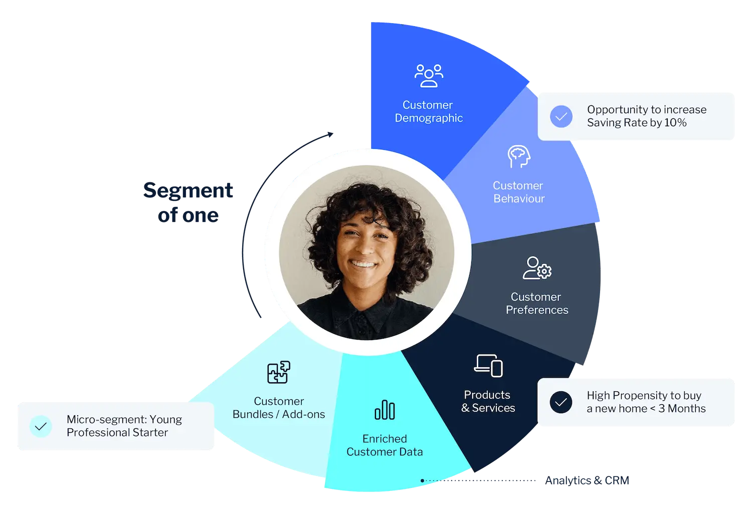 Orchestrate data to create meaningful micro-segments for unique customer profiles, empowering you to tailor your value proposition, products, services, add-ons, and bundles. Discover the power of connecting and managing all your customer data through a single platform — and achieve the segment of one.